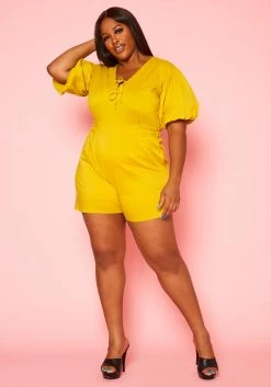 Plus Size Balloon Sleeve Romper