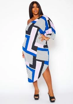 Plus Size Asymmetric One Shoulder Dress