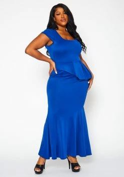 Plus Size Asymmetric Peplum Mermaid Hem Gown