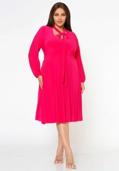 Plus Size Bow Collar Pleated Fit & Flare Dress