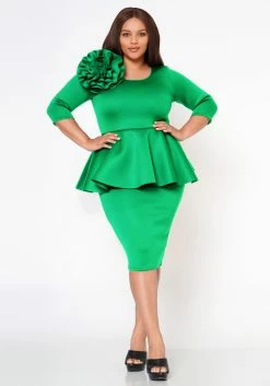 Plus Size Blossomed Floral Ascent Peplum Dress