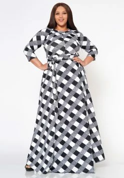 Plus Size Fit & Flare Plaid Pattern Maxi Dress