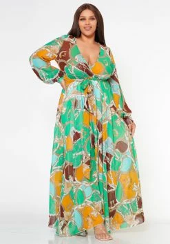 Plus Size Multi Chainlink Pattern Fit & Flare Maxi Dress