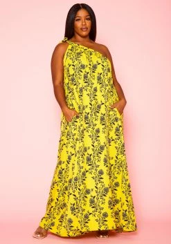 Plus Size One Sleeve Asymmetrical One Shoulder Jumpsuit