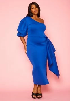 Plus Size One Sleeve Ruffle Flare Mini Dress