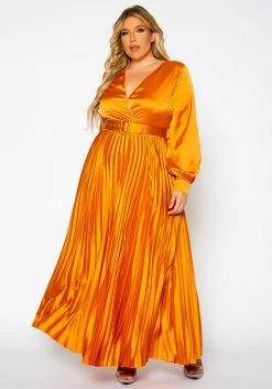 Plus Size Pleated Maxi Flare Dress