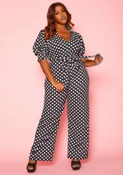 Plus Size Polka Dot Print Jumpsuit