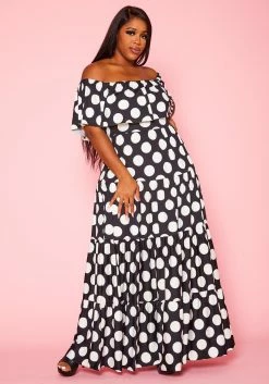 Plus Size Polka Dot Flare Maxi Dress