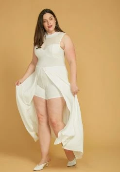 Plus Size Sleeveless Mesh Accent Romper With Cape Hem