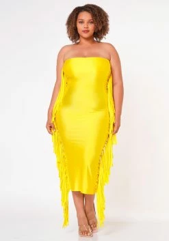 Plus Size Side Fringe Hem Bodycon Tube Dress
