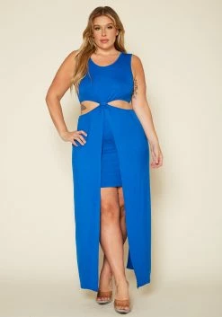 Plus Size Two Tone Pleated Asymmetrical Maxi Dress