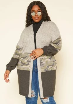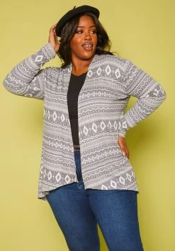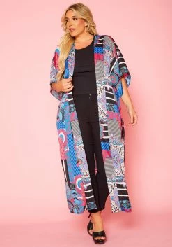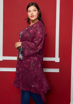 Pleione Plus Size Sheer Floral Embossed Robe Cardigan