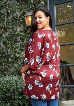 Pleione Plus Size Women’s Self-tie Front Floral Batwing Kimono Cardigan