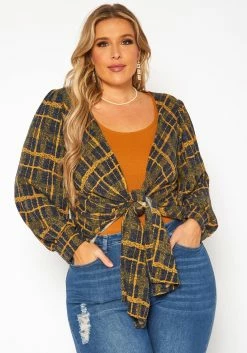 Plus Size Plaid Pattern Waterfall Drape Cardigan