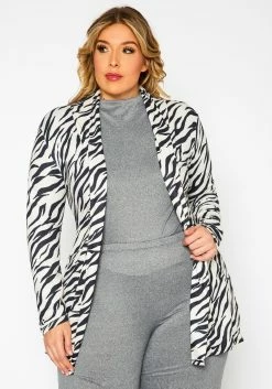 Plus Size Zebra Print Open Front Cardigan