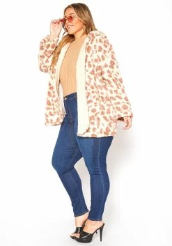 Asoph Plus Size Leopard Print Fleece Coat