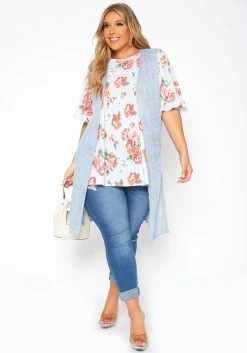 Asoph Plus Size Open Front Longline Vest
