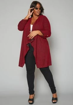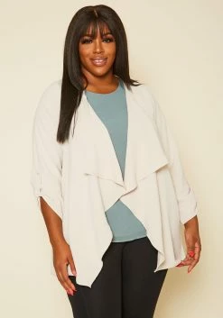 Plus Size Drape Front Open Front Shimmer Cardigan