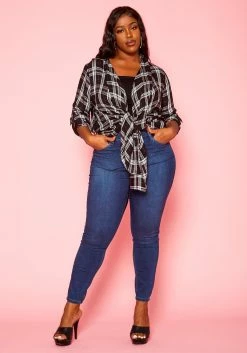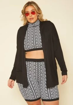 Plus Size Plaid Pattern Waterfall Drape Cardigan