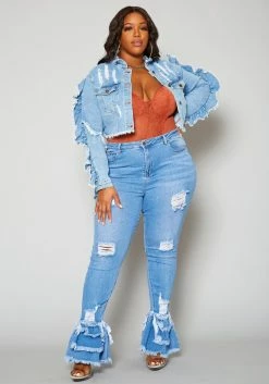 Plus Size Ruffle Shoulder Hem Peplum Jacket