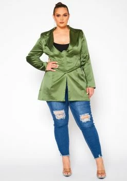 Plus Size Tassel Shoulder Hem Notch Collar Blazer