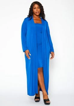 Plus Size Solid Tube Dress & Duster Cardigan Set