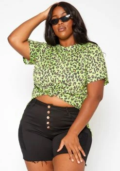 Asoph Plus Size Leopard Print Crew Neck Shirt