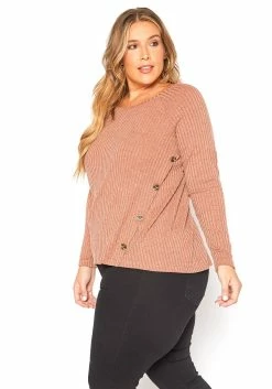 Asoph Plus Size Ribbed Knit Button Front Sweater
