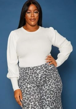 Asoph Plus Size Ribbed Knit Puffy Long Sleeve Top