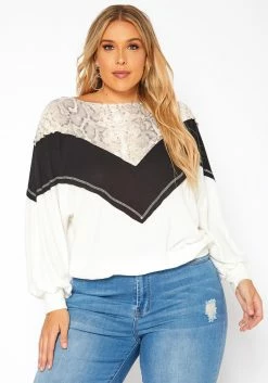 Asoph Plus Size Snakeskin Splice Knit Sweater