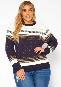 Asoph Plus Size Polka Dot Knit Sweater