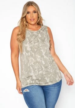 Asoph Plus Size Camo Print Open Back Tank Top