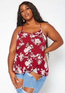 Asoph Plus Size Floral Print V Neck Cami Top