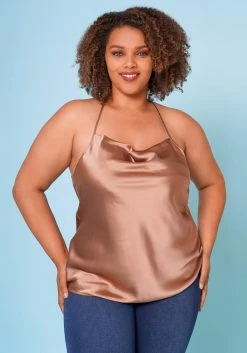 Plus Size Satin Cowl Neck Cami Top