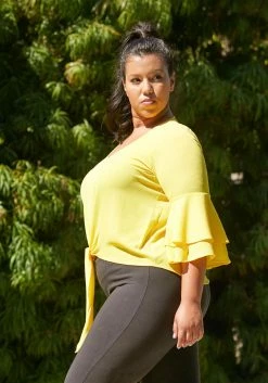 Asoph Plus Size Tie Front Crop Top & Flare Pants Set