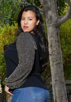 Pleione Round Neck Plus Size Women Clothing Smocked Ruffle Cuff Top