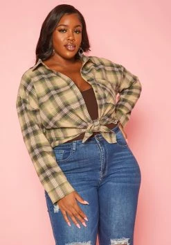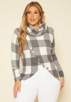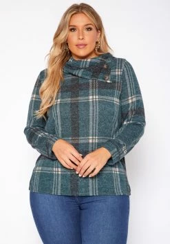 Plus Size Plaid Print Asymmetric Neck Sweater