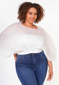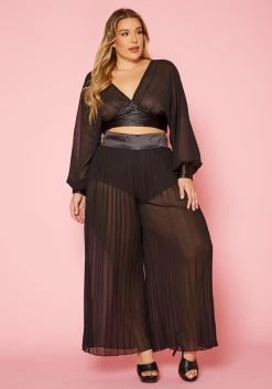 Plus Size Pleated Dolman Sleeve Top & Palazzo Pants Set