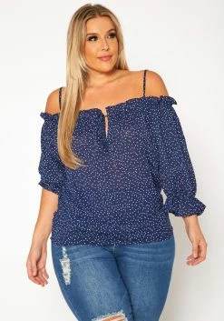Plus Size Polka Dot Off Shoulder Cami Blouse