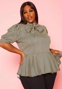 Plus Size Puff Shoulder Sleeve Peplum Blouse