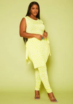 Plus Size Polka Dot Print Sleek Top And Leggings Set
