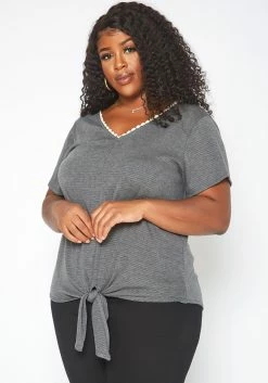 Asoph Plus Size Crochet Hem V Neck Shirt