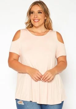 Asoph Plus Size Cross Lace Back Cold Shoulder Top