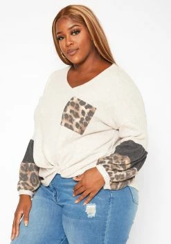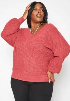 Plus Size Waffle Knit Dolman Sleeve Sweater