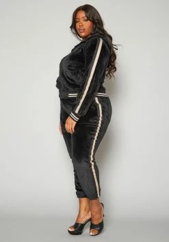 Plus Size Velvet Striped Asymmetric Top & Legging Set