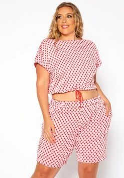 Asoph Plus Size Polka Dot Two Piece Set