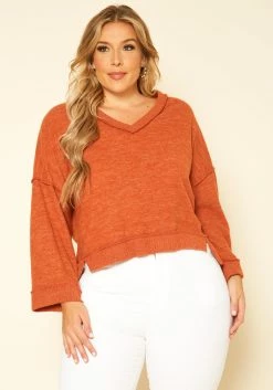 Plus Size Relaxed Fit V Neck Open Back Sweater