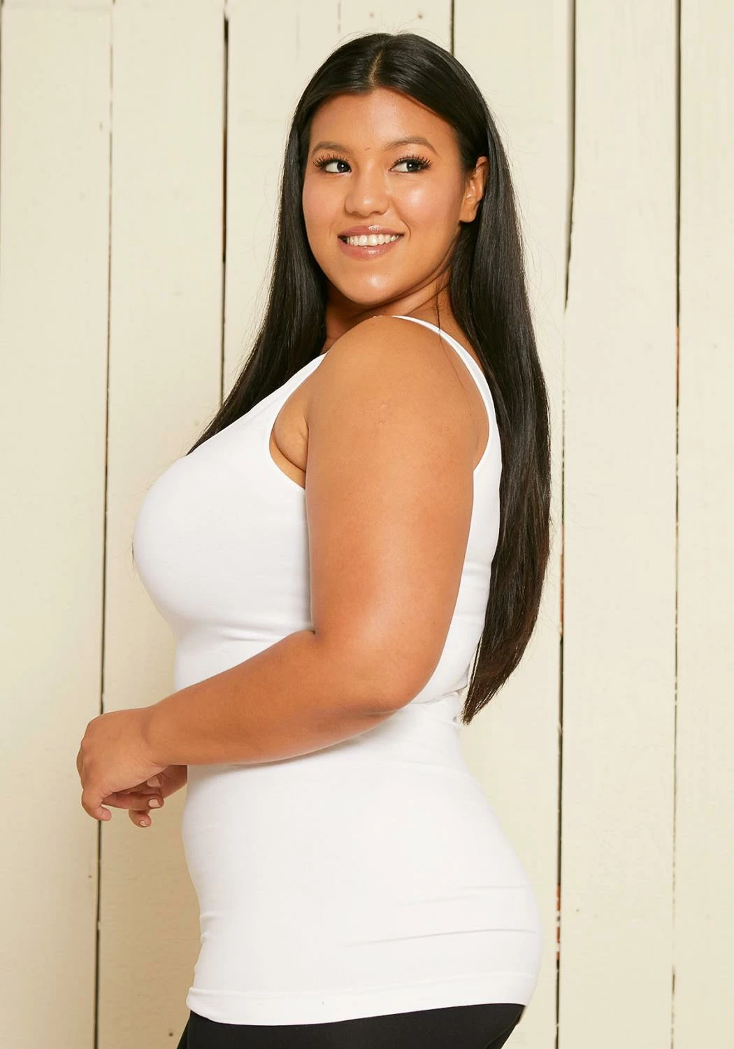 Nikibiki seamless women’s plus size daily essential tank top. Comes to hip length. Full stretch.