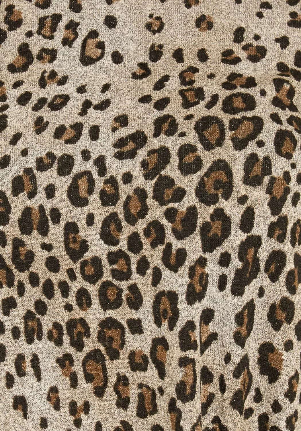 A casual plus size sweater with leopard print and a wrap knot tie hem.