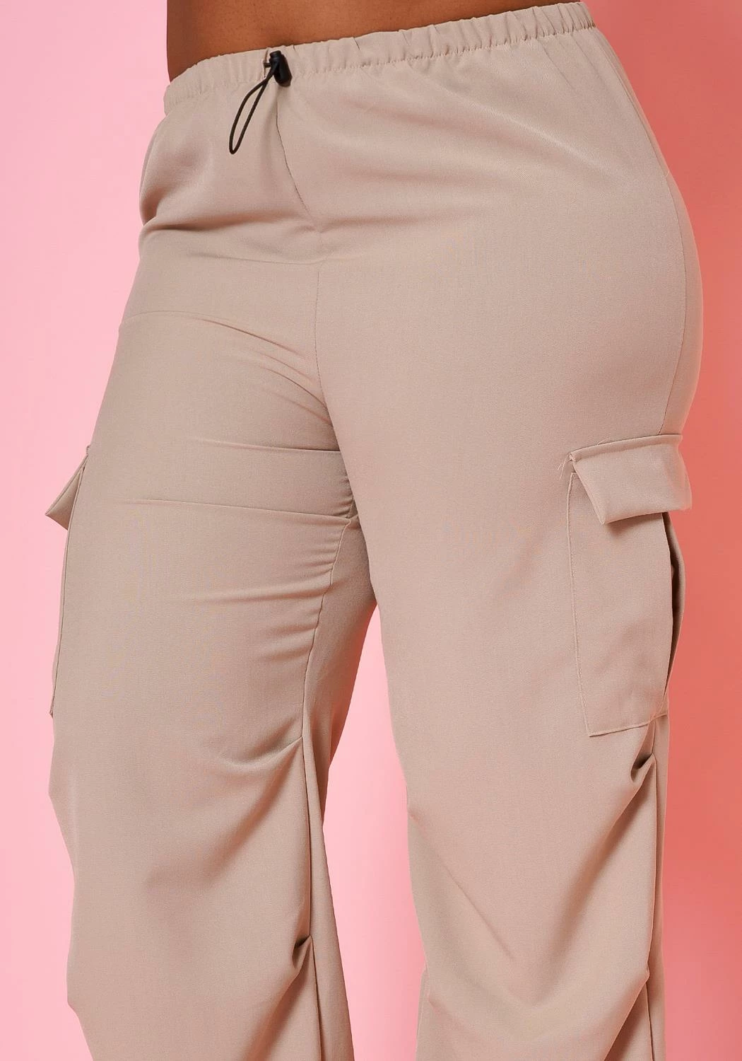 Plus size women’s trendy cargo pants in straight leg fit, waist drawstring hem and cargo pockets.